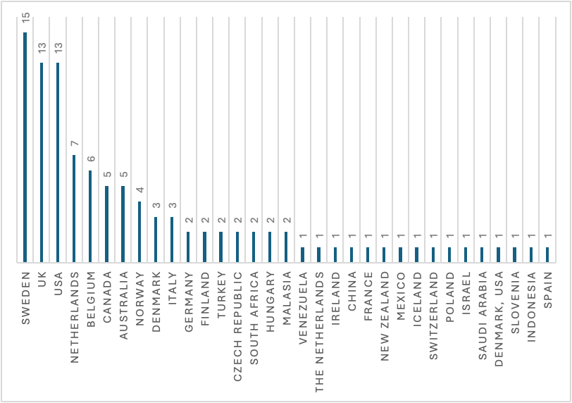 Percentage of 1) Count of Country of Lead Author’s Host Institution (N=104)